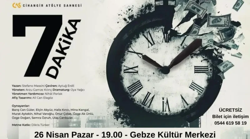 Cihangir Atölye Sahnesi, “7 dakika” adlı oyunu 26 Nisan Pazar günü saat 19.00’da Gebze Kültür Merkezinde ücretsiz sahneleyecek.