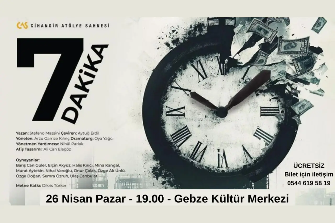 Cihangir Atölye Sahnesi, işçi hakları ve dayanışmayı konu alan “7 Dakika” oyununu 26 Nisan’da Gebze Kültür Merkezi’nde ücretsiz sahneleyecek. Oyun, Gebzeli işçilerle 1 Mayıs öncesi buluşacak.