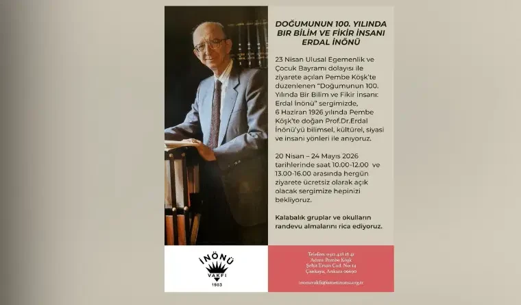 İnönü Vakfı, 23 Nisan Ulusal Egemenlik ve Çocuk Bayramı nedeniyle ziyarete açılacak olan İkinci Cumhurbaşkanı İsmet İnönü’nün evi Pembe Köşk’te “Doğumunun 100. Yılında Bir Bilim ve Fikir İnsanı: Erdal İnönü” sergisi düzenleyecek.