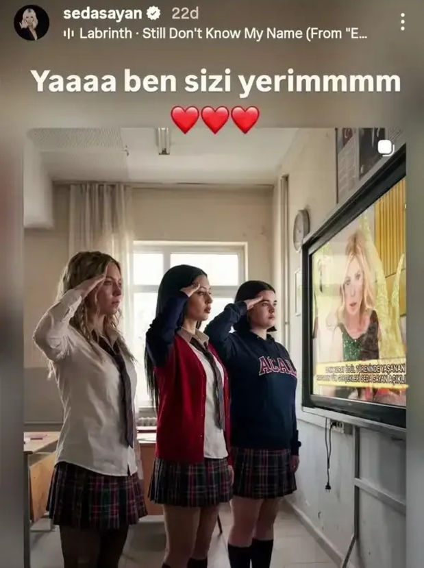 Gündem olan söz konusu görselde, dünya çapında geniş bir izleyici kitlesine sahip olan ‘Euphoria’ dizisinin oyuncuları yer alıyordu. Yapay zekâ tarafından oluşturulan karede; Hollywood yıldızlarının bir sınıf ortamında televizyon ekranına bakarak Seda Sayan’a asker selamı verdiği kurgulanmıştı. Görselin dijital bir manipülasyon olduğunu fark etmeyen tecrübeli isim, bu sahte kareyi “Yaaa ben sizi yerim” notuyla yayımladı.