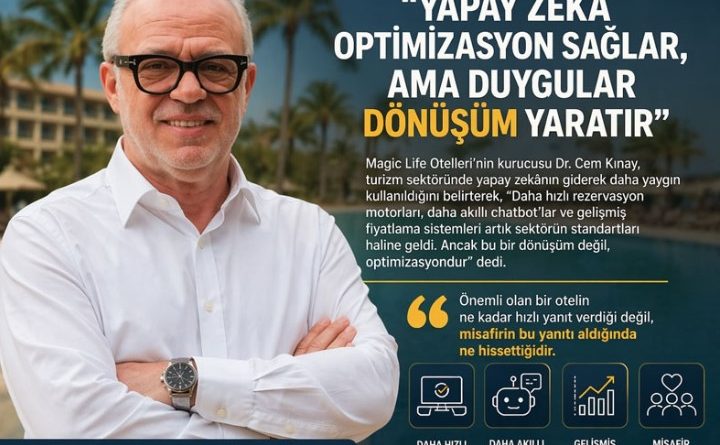 Küresel turizm endüstrisi, hızlı rezervasyon motorları, makine öğrenmesiyle çalışan akıllı chatbot’lar ve dinamik fiyatlama algoritmalarıyla devasa bir teknolojik kuşatmanın içinden geçiyor. Ancak Turizmdays’te yayımlanan ufuk açıcı analize göre; Magic Life Otelleri’nin kurucusu Dr. Cem Kınay bu teknolojik entegrasyonun bir “dönüşüm” değil, sadece basit bir “Algoritmik Optimizasyon” olduğunu vurguluyor. Kınay’a göre sektördeki temel kural hiç değişmedi: Önemli olan bir otelin yapay zekâ ile misafire ne kadar hızlı yanıt verdiği değil, misafirin o yanıtı aldığında ne “hissettiğidir”.